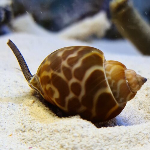 Babylonia zeylanica žije ve spodním substrátu a hledá v písku úlomky, smrtelné zbytky prošlého života v akváriu a jejich oblíbenou pochoutku... štětinatce! Proto je to velmi oblíbený písečný šnek pro útesové akvárium. Dosahuje velikosti cca 5-7 cm.