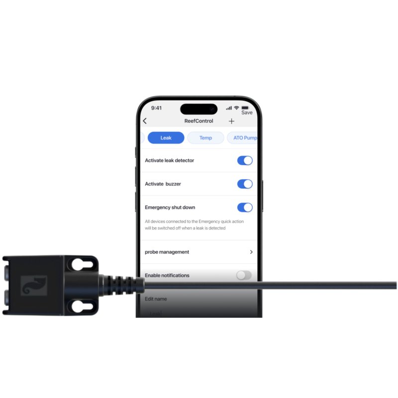 ReefSense Leak Sensor je spolehlivý digitální senzor úniku vody, který výrazně zvyšuje bezpečnost akvária a umožňuje systému automaticky reagovat, pokud je detekována voda mimo nádrž nebo jímku. Plná integrace se systémem ReefControl a aplikací ReefBeat umožňuje uživatelům monitorovat akvárium v reálném čase a minimalizovat riziko zaplavení nebo poruch.