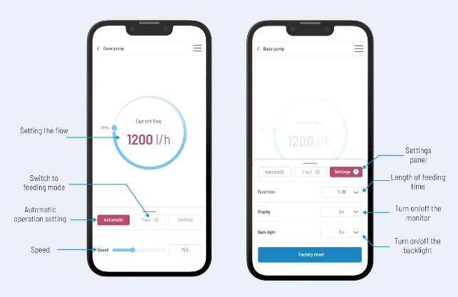 Vše co potřebujete k ovládání čerpadla je bezplatná aplikace Smart Reef . Můžete si ji nainstalovat na své mobilní zařízení ( Android, iOS ) nebo ovládat z prohlížeče. Spárujte čerpadlo Base pump se svým účtem Smart Reef a vychutnejte si širokou škálu chytrých funkcí.